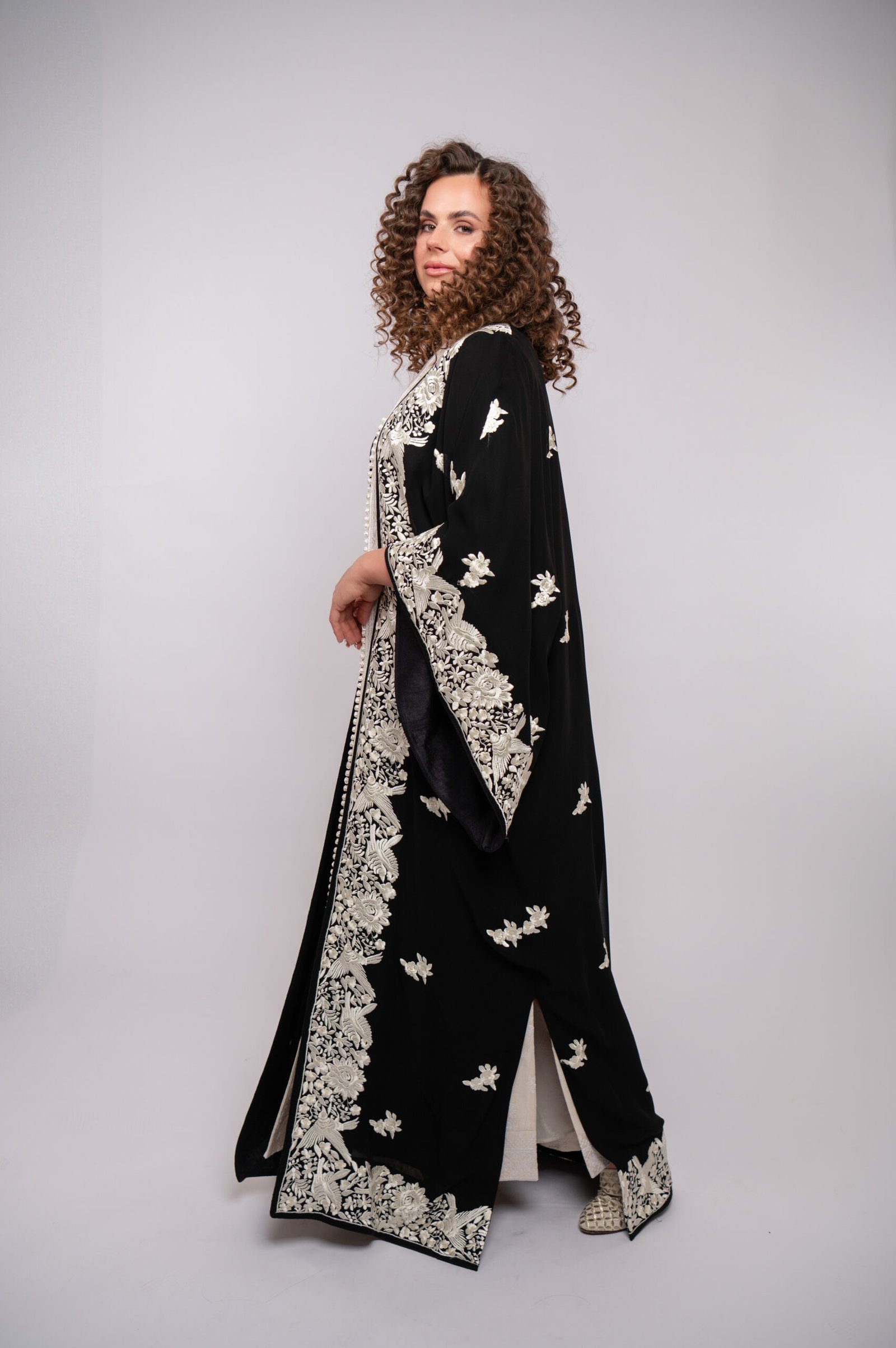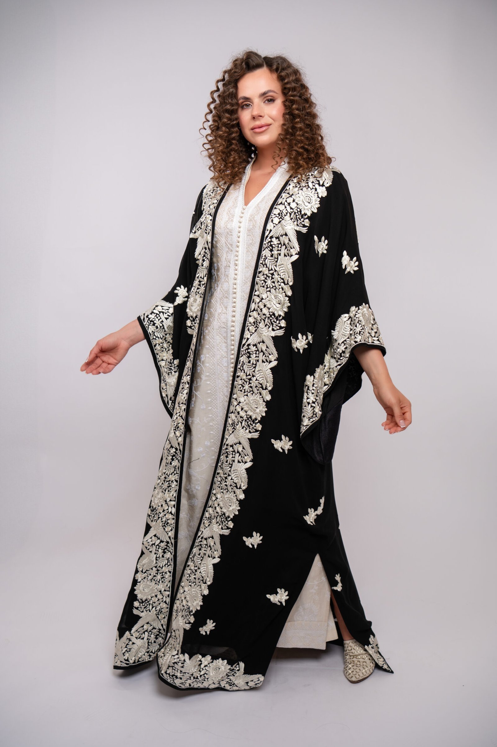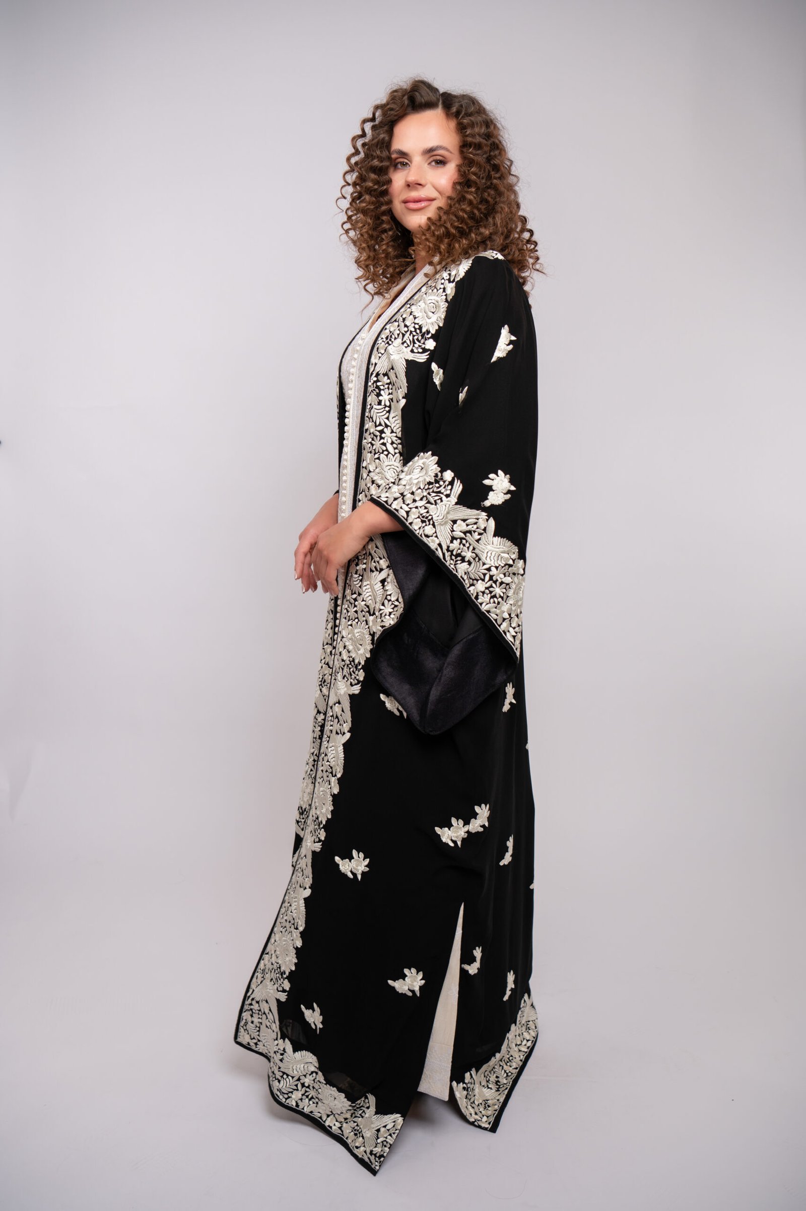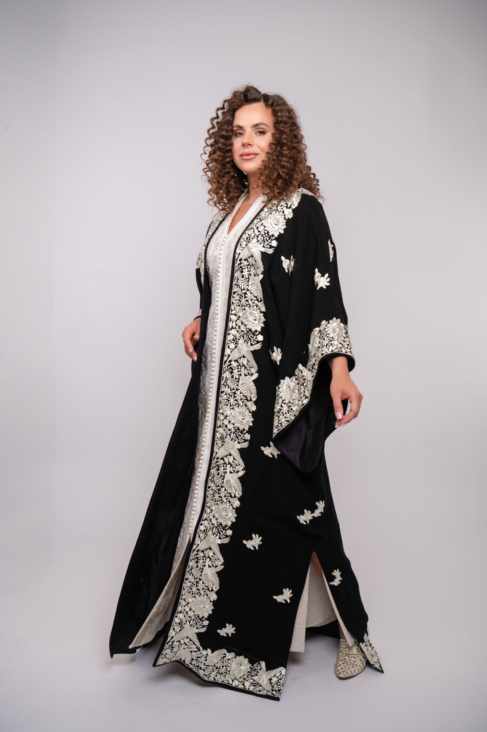 A delicate abaya from the Limited Collection, inspired by pearls, featuring subtle elegance and refined craftsmanship