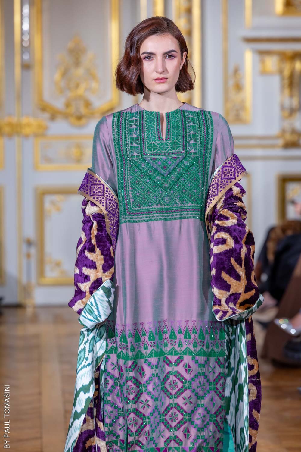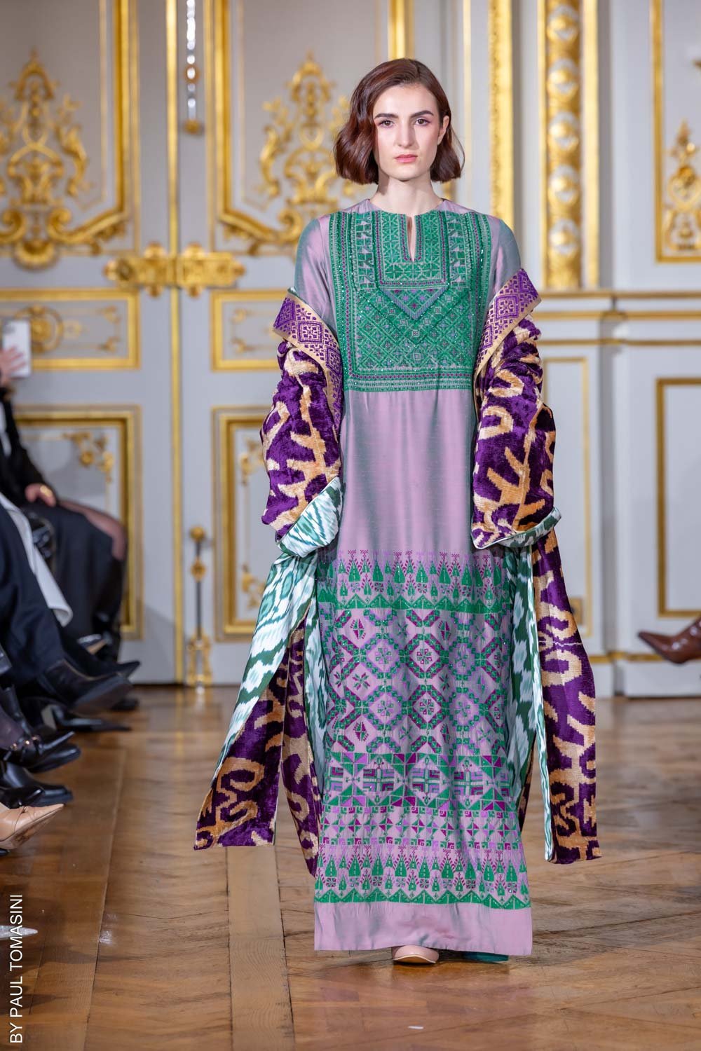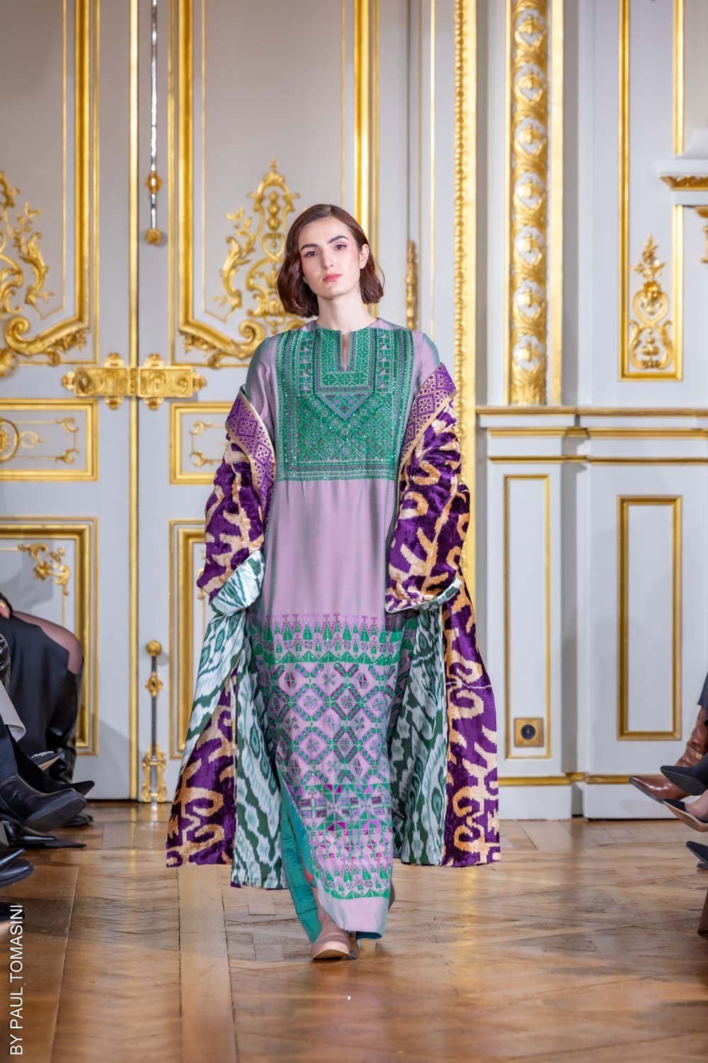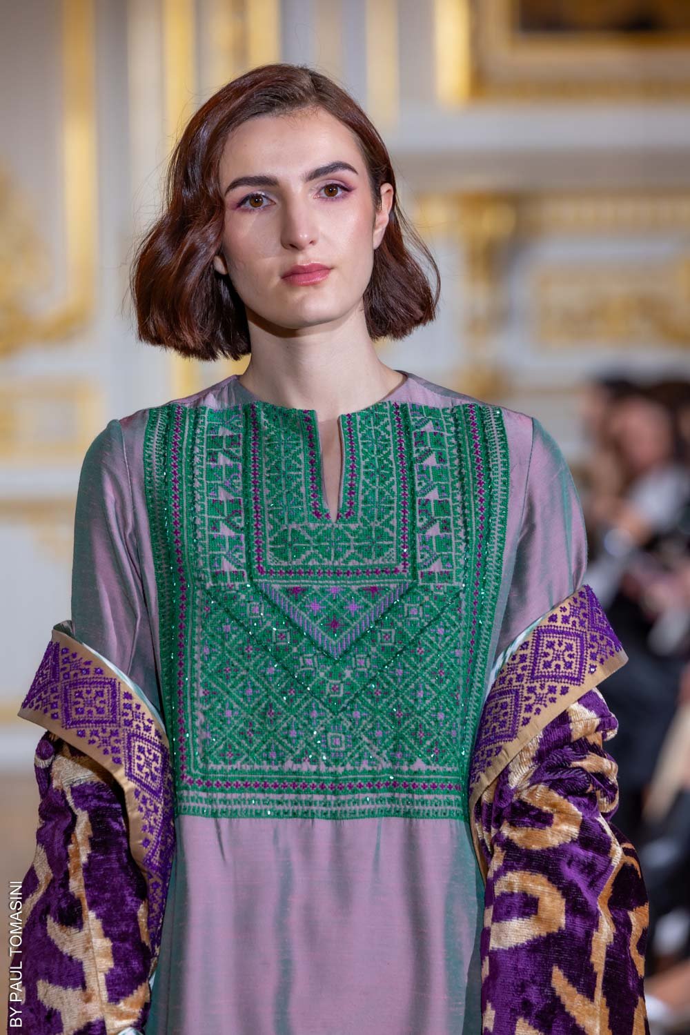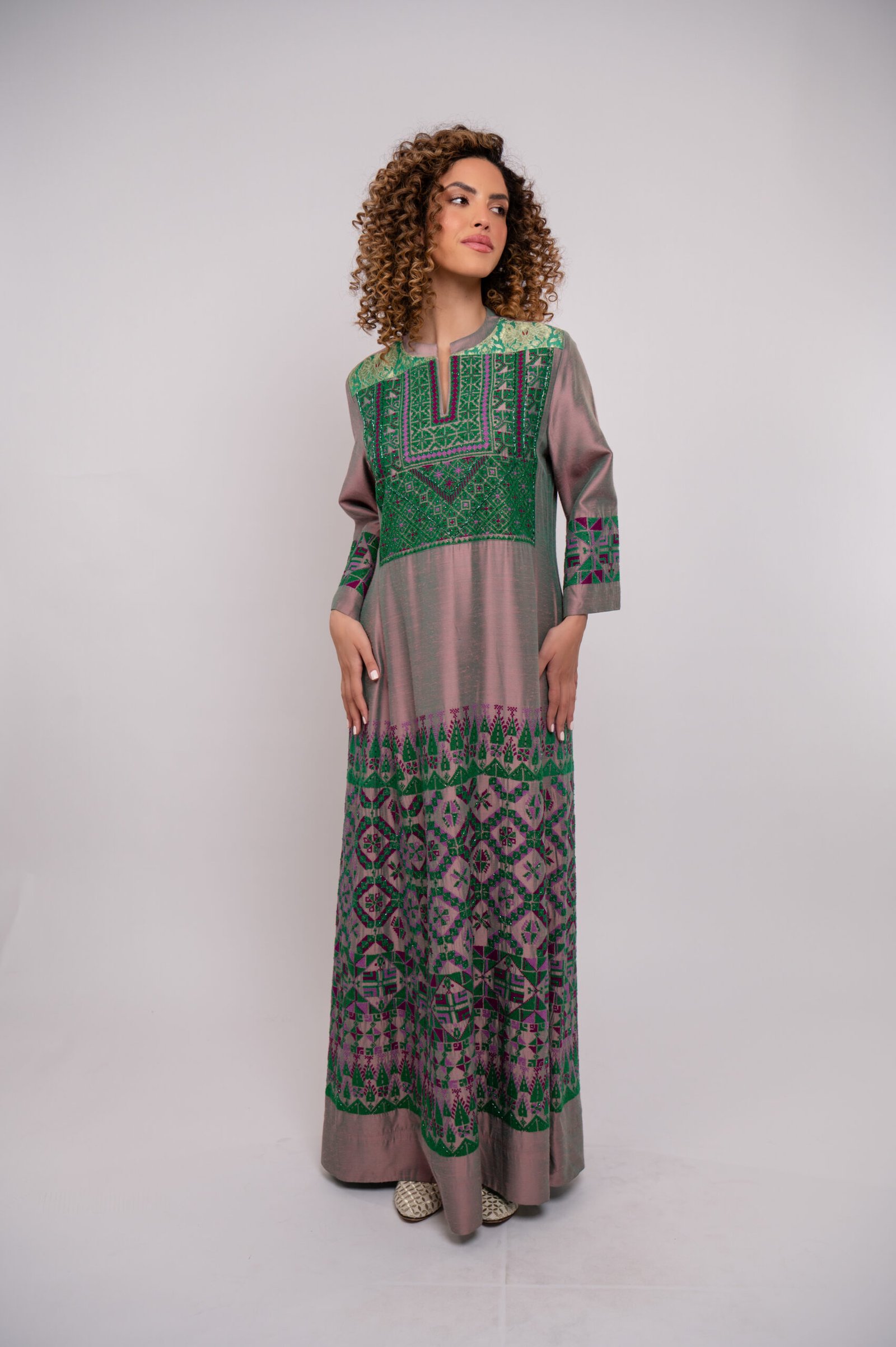 Inspired by the desert’s intricate patterns, the “Desert Geometry” thobe features modern geometric embroidery and delicate beading, blending natural elegance with bold sophistication.